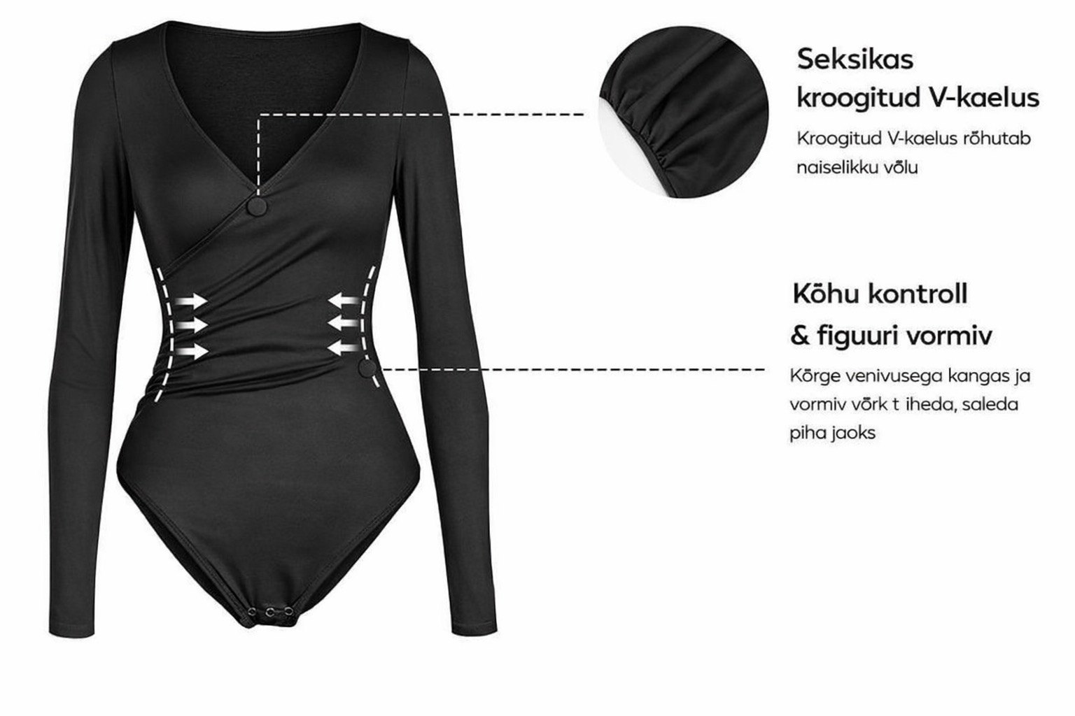 Tänu ajatu lõikega disainile saad seda kanda nii vormiva pesuna kui ka topina – tööl, linnas või õhtul välja minnes.