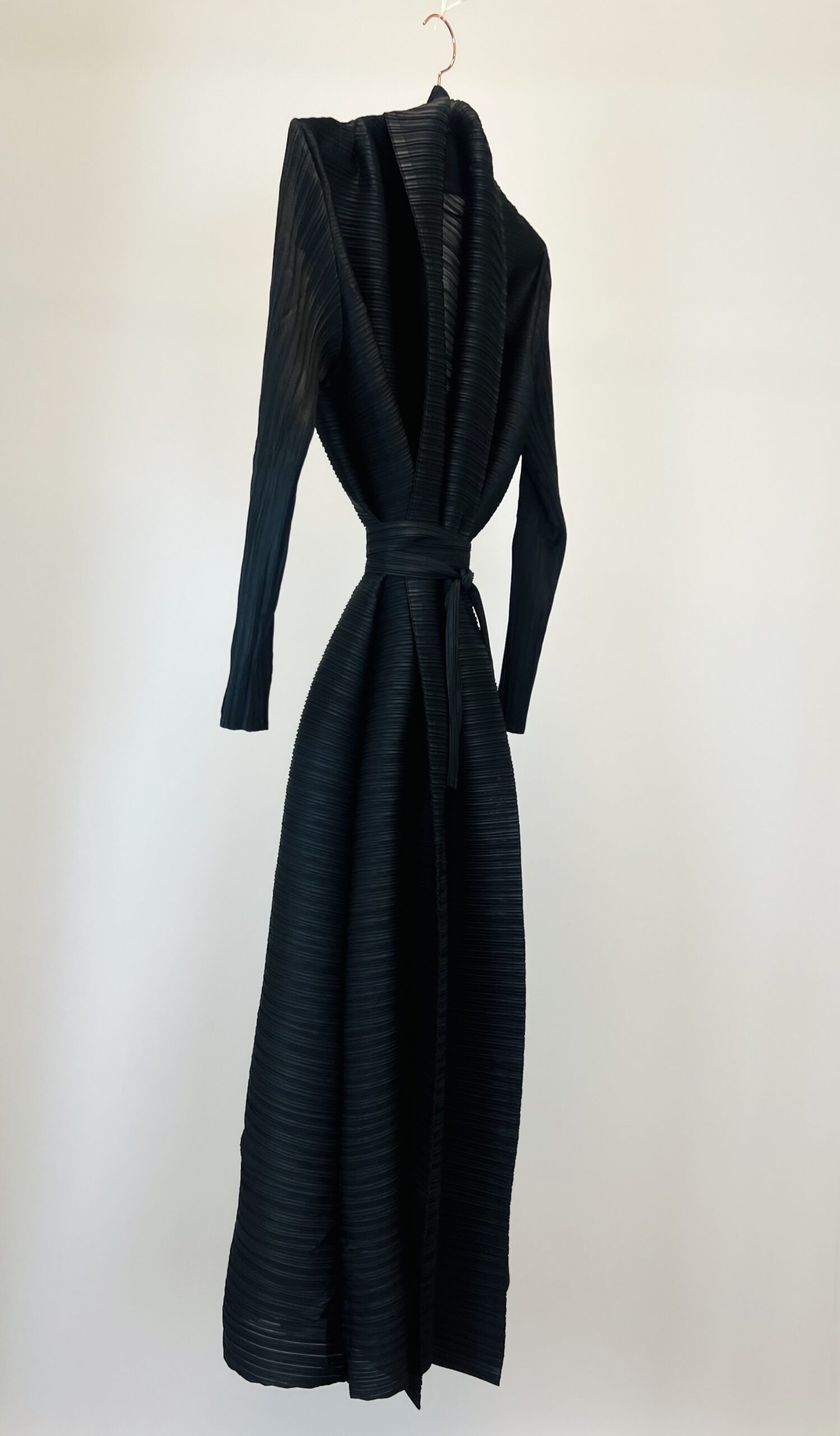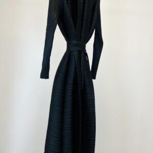 Crafted from a lightweight, slightly stretchy fabric, it drapes beautifully and fits comfortably across sizes S to XL. Thanks to its one-size design, it flatters various body types – whether worn open or tied with the matching belt.