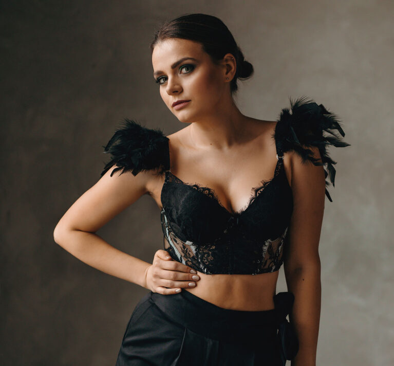 Minimal lace design with push-up cups for subtle shaping and support.